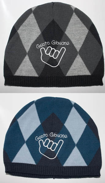 Cuffia a rombi Gesto Giovane® . Dopo la grande richiesta dei cappellini estivi, Gesto Giovane propone anche la linea invernale con questa bellissima cuffia unisex! Disponibile nei colori nero/ grigio o blu/azzurro! Spese di spedizione solo 2 euro!!!