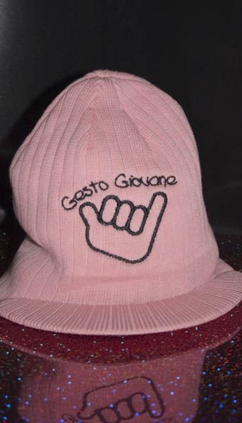 Cuffia Gesto Giovane® invernale! Disponibile in bianco e rosa!!! Dopo la grande richiesta dei cappellini estivi, Gesto Giovane propone anche la linea invernale con la novità della visiera corta e arrotondata per questa nuova versione in cotone, dal gusto metropolitano. Spese di spedizione solo 2 euro!!!